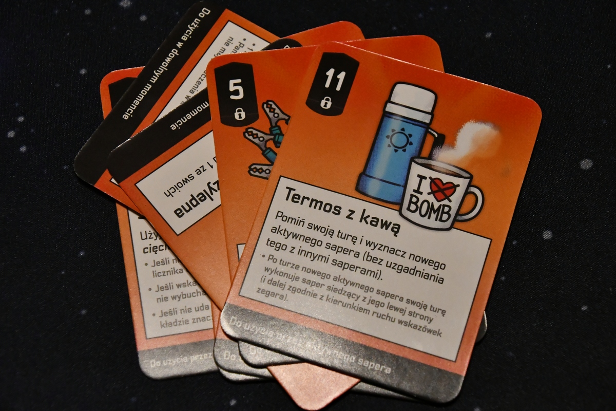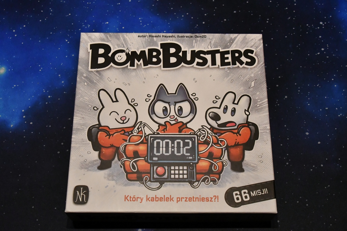 W Bomb Busters mamy rozbroić bombę. Aby to zrobić, trzeba przeciąć prawidłowo kabelki niebieskie i żółte, aż pozostaną tylko czerwone. Przecinanie polega na wskazaniu u innego gracza drugiej końcówki kafelka, której końcówkę mamy u siebie. Problem w tym, że są one zasłonięte i jest tylko kilka podpowiedzi: kabelki na podstawkach są ułożone rosnąco, kabelki niebieskie mają wartości 1-12, kabelków w każdym numerze są 4 sztuki, przy jednym z kabelków gracz wskazuje na początku znacznikiem jego wartość, kilka razy można popełnić błąd, jednorazowe karty sprzętu pomagają (ale na starcie są niedostępne). Na pierwszy rzut oka wydaje się to niemożliwe do wykonania, ale w praktyce - patrząc też na działania innych graczy - dedukcyjnie można dojść do tego kto ma jakie kabelki. Gdzie one się znajdują na podstawce to już nieco trudniejsze zadanie. Gra przyciąga właśnie tym, że czy się odgadło czy nie to chce się jeszcze i jeszcze - zwłaszcza, że kolejny scenariusz będzie nieco inny. Gdyby nie to rozkładanie... Warto rozmawiać z innymi o wykorzystaniu sprzętu, bo o swoich kabelkach to oczywiste jest, że nie można nic mówić. No i odczuwalny jest klimat. W znanych grach logicznych, w których nie mamy wiedzy o całości (Turing Machine, Zaginiony Kod, Kryptyda) w tej chyba najbardziej umiałem się wczuć "żeby ta bomba nie wybuchła".
