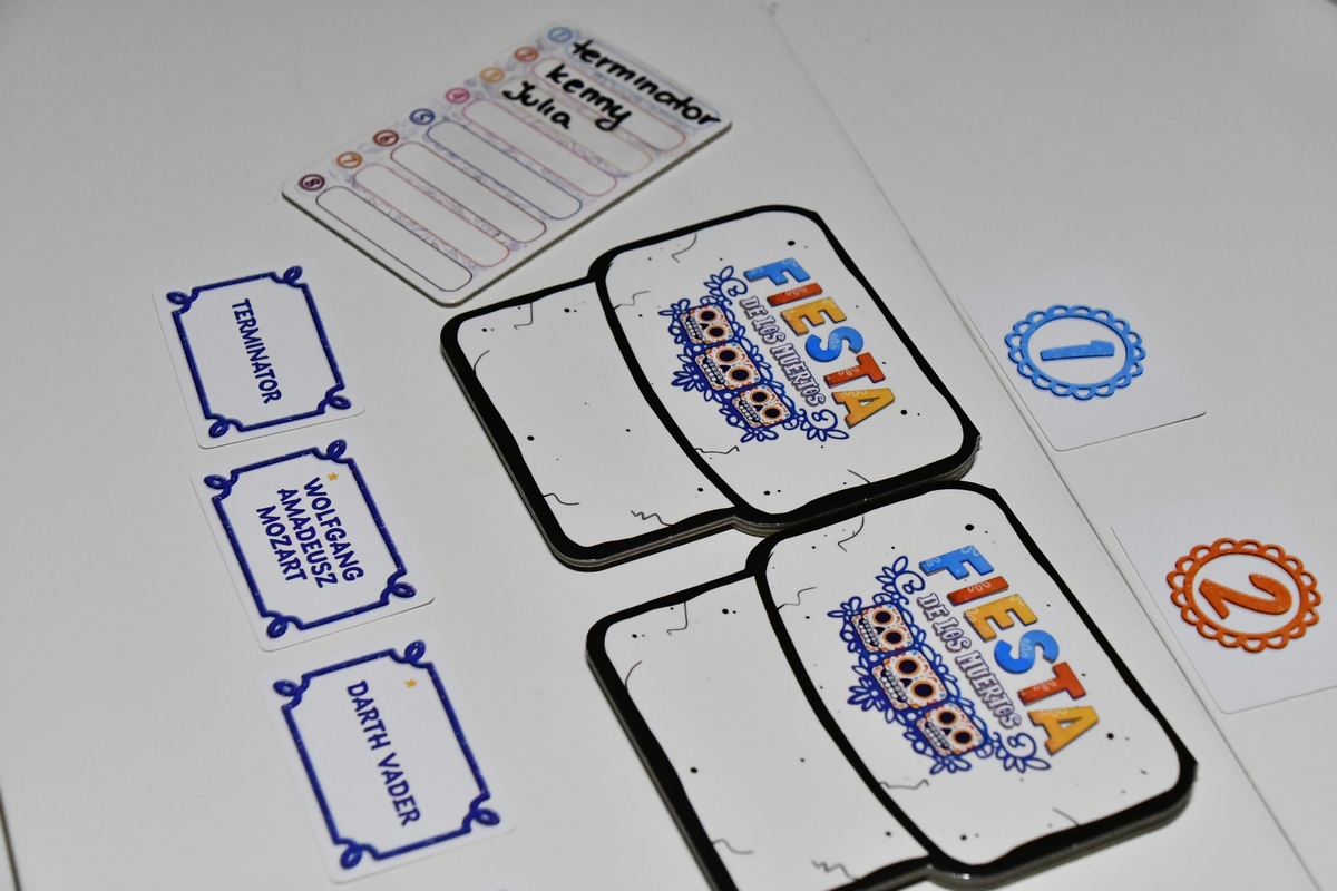 Kooperacyjna gra imprezowa zainspirowana meksykańskim Świętem Zmarłych. W grze gracze muszą odgadnąć tożsamość nieżyjących postaci, występujących na kartach. Postać można opisać tylko jednym słowem. Ale uwaga! To słowo przechodzi z rąk do rąk i zmienia się stopniowo. Każdy gracz losuje kartę postaci. Następnie zapisuje jedno kojarzące się z nią słowo na tabliczce - czaszce, którą przekazuje kolejnemu graczowi. Ten z kolei ściera je, zapisuje swoje skojarzenie do poprzedniego słowa i przekazuje dalej. W ten sposób tabliczka przekazywana jest 4 razy. Czy uda się graczom znaleźć swoją postać po kilku przejściach przez tę absolutnie nietypową wariację głuchego telefonu?