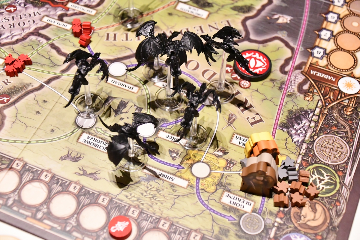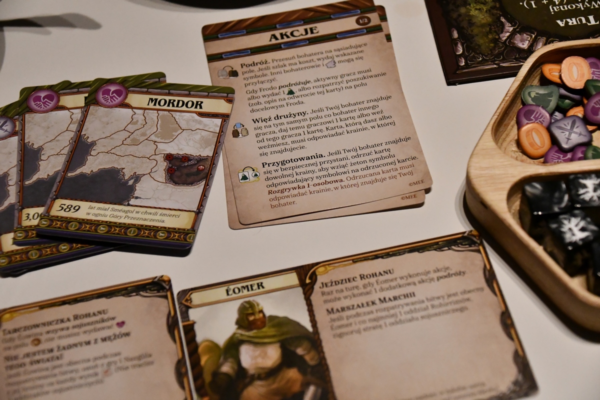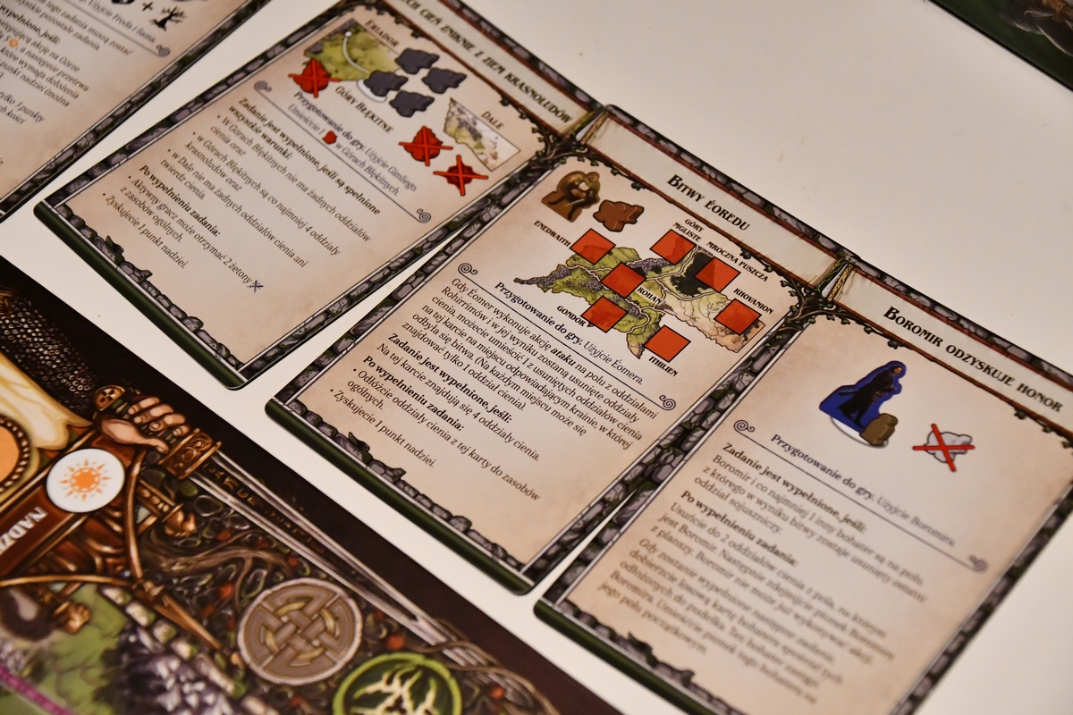 Celem gry jest wypełnienie wszystkich zadań dobranych na początku partii. Ostatnim wyzwaniem jest zawsze zniszczenie Jedynego Pierścienia, ale oprócz tego losujemy 3 inne, które będziemy musieli zrealizować najpierw. W ramach pojedynczej tury możemy wykonać do 4 akcji jednym z nich i tylko 1 drugim. Wśród dostępnych akcji mamy do wyboru przemieszczanie się po mapie Śródziemia, wymianę kart z innymi graczami, pozyskiwanie żetonów z symbolami poszczególnych krain, wezwanie sojuszników, walkę z siłami cienia oraz zdobycie twierdzy. Po każdej turze gracza siły cienia przegrupowują się, a ich przemieszczanie może doprowadzić do bitew w różnych częściach Śródziemia. Istotnym zasobem, którego musimy strzec podczas rozgrywki, jest nadzieja, odzwierciedlająca morale Froda. Niektóre efekty powodują przypływ nadziei albo jej utratę, co zaznaczamy na specjalnym torze. Jeśli znacznik kiedykolwiek dotrze na najniższe pole, będzie to oznaczać, że Frodo stracił całą nadzieję, a my przegraliśmy.
