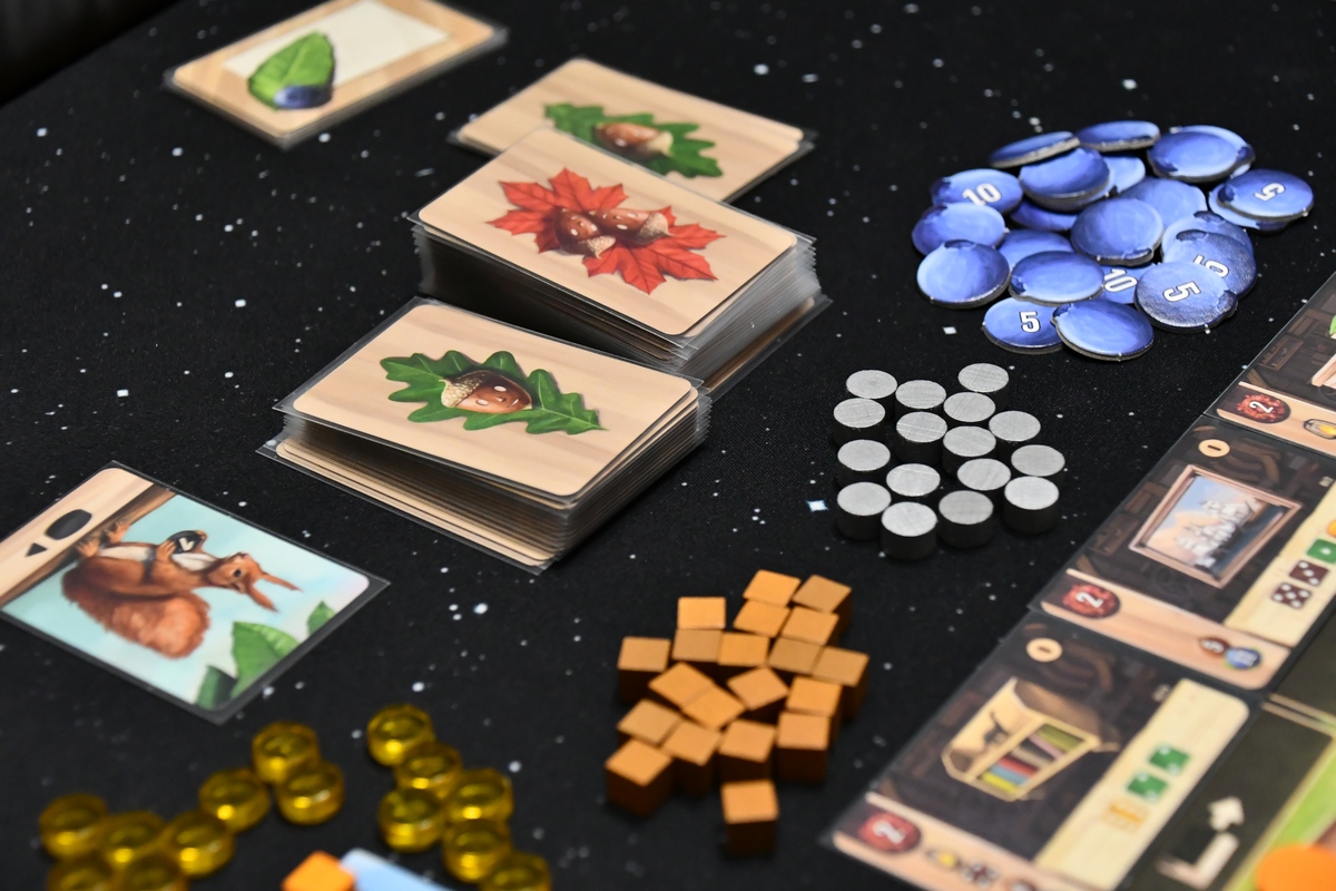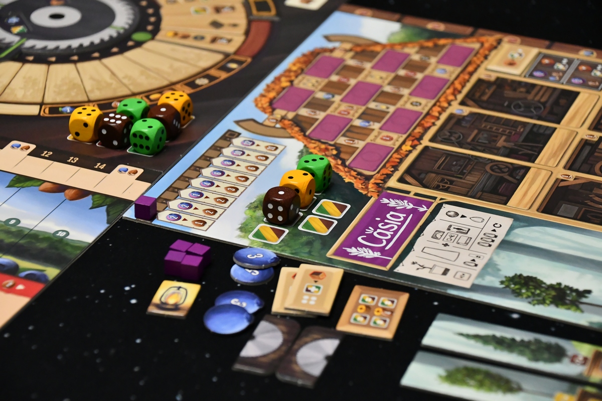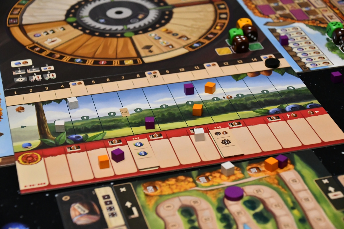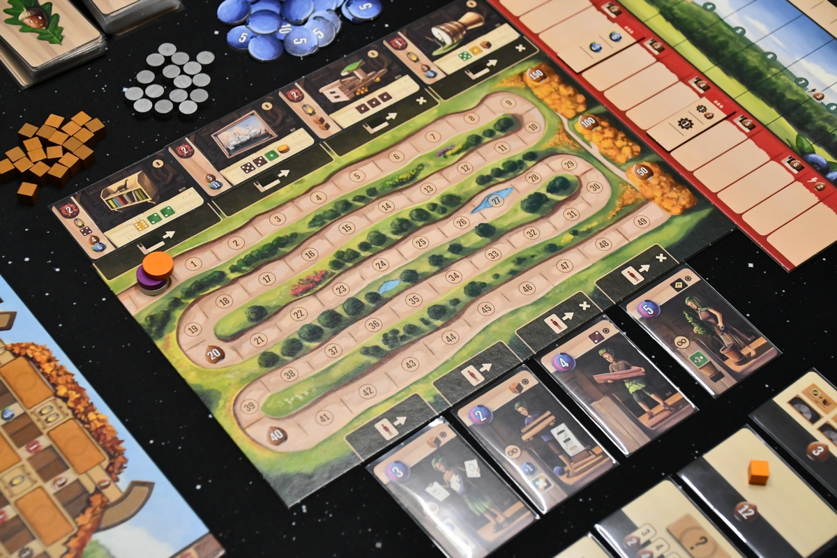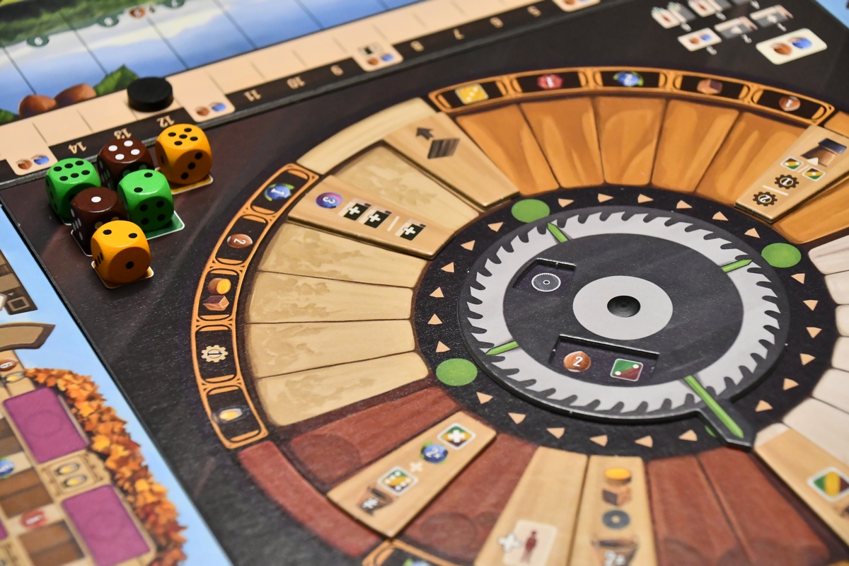 Jest to gra "jednej akcji", gracze kolejno wykonują jedną akcję główną oraz szereg pobocznych. Dzięki budowaniu silniczka, z rundy na rundę tych drugich może być więcej i więcej przyniosą korzyści. Najbardziej korzystne będzie zawsze ukończenie przedmiotu-zlecenia, bo z niego dostaje się znacznie więcej nagród niż z innych działań, a dodatkowo im szybciej się wykona zlecenie tym lepiej. Jeżeli nie skupimy się na zleceniach, to nagle zacznie brakować drewna (czyli kości), borówek (czyli pieniędzy) i ogólnie zrobi się bardzo ciasno. Realizowanie zleceń i zdobywanie tych kart jest super i chce się ich mieć jak najwięcej. Technicznie wykonanie akcji głównej polega na przeniesieniu kafelka tej akcji na kole do kolejnej ćwiartki. Jest tam kilka zasad, ale ostatecznie mechanizm jest bardzo przyjemny. Ponieważ prowadzimy warsztat - na kole akcji zdobywamy drewno, rozwijamy narzędzia, zdobywamy zlecenia. Akcje dodatkowe to praca w samym warsztacie. I to też jest dobrze zaplanowane. Możemy ciąć kawałki drewna, sklejać je albo dodawać ścinki. Możemy zasadzić małe drzewo i patrzeć jak rośnie. Kawałkiem drewna jest kostka, więc przykładowo podzielenie wartości z jednej kostki na dwie to cięcie. To co mi zgrzytało, to dodanie nieco na siłę kart zleceń orzechowych i zamówień publicznych. Bez nich gra byłaby czytelniejsza. Sama rozgrywka wymaga skupienia i dość precyzyjnego pilnowania, czy o czymś nie zapomnieliśmy. Warto też dodać, że losowości tu nie ma (wynik zależy od naszych działań), ani za dużo interakcji. Jest to pełnowymiarowa propozycja na wieczór, niemniej podobną satysfakcję mam z gier o nieco niższym poziomie trudności, więc gdy będę szukał jakiegoś eurasa to przynajmniej dla mnie nie byłby to tytuł pierwszego wyboru.