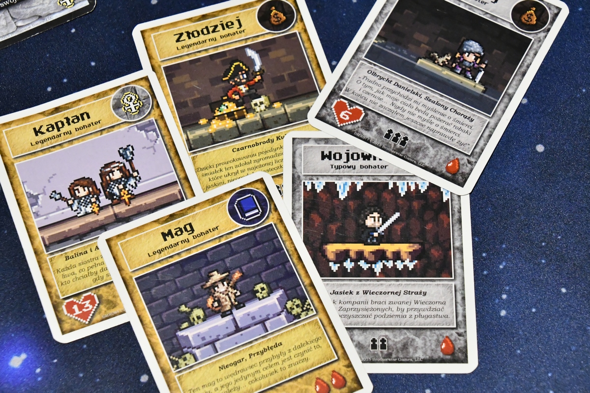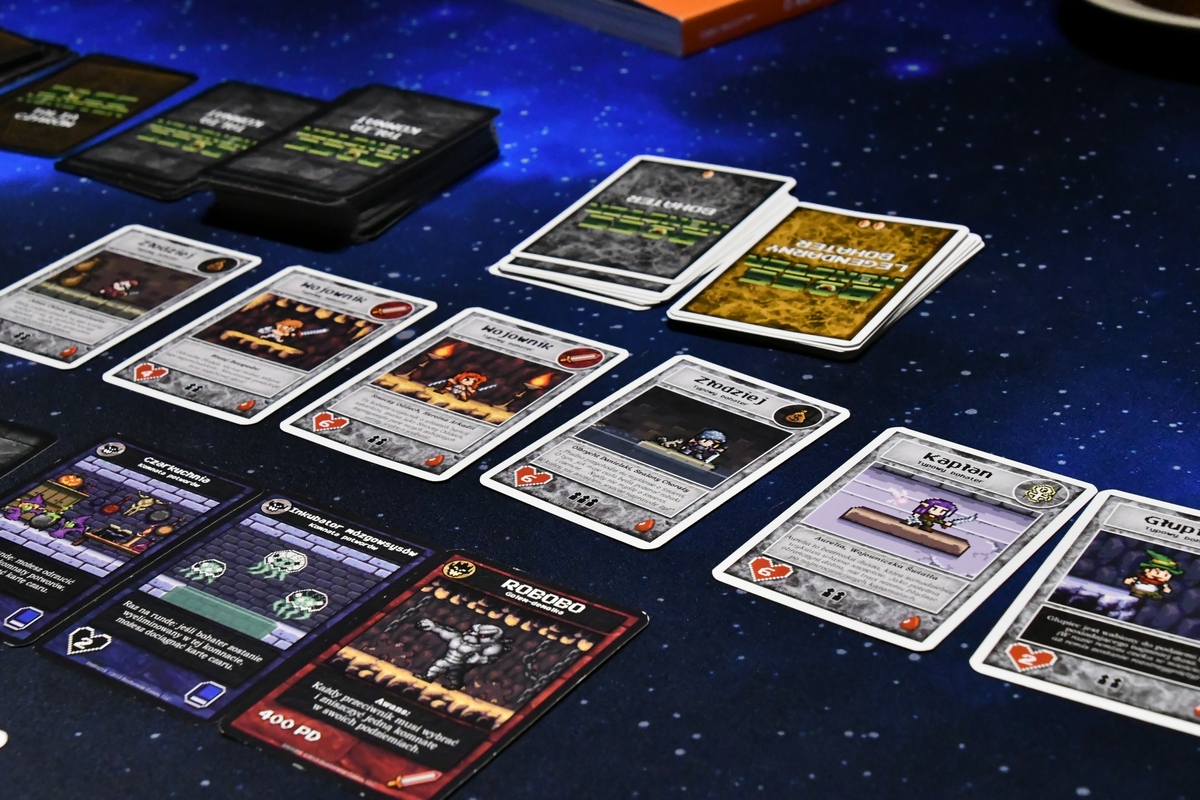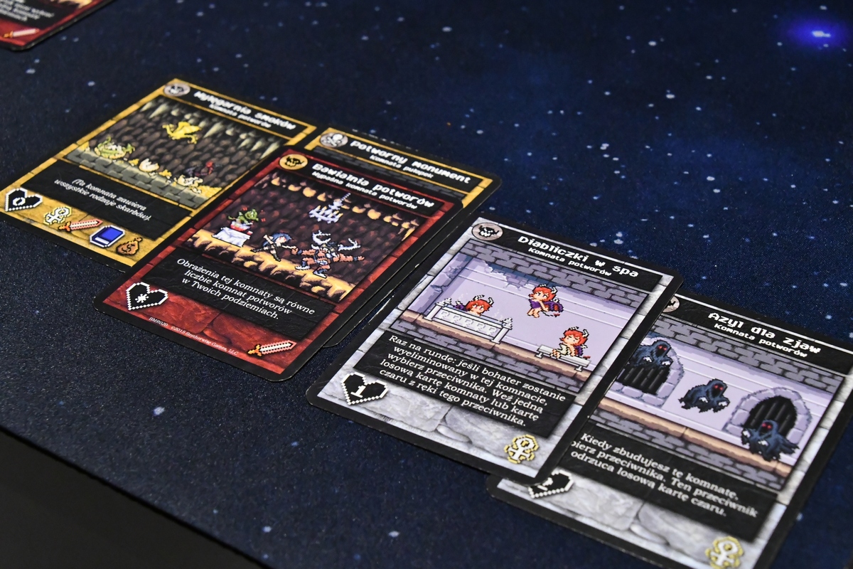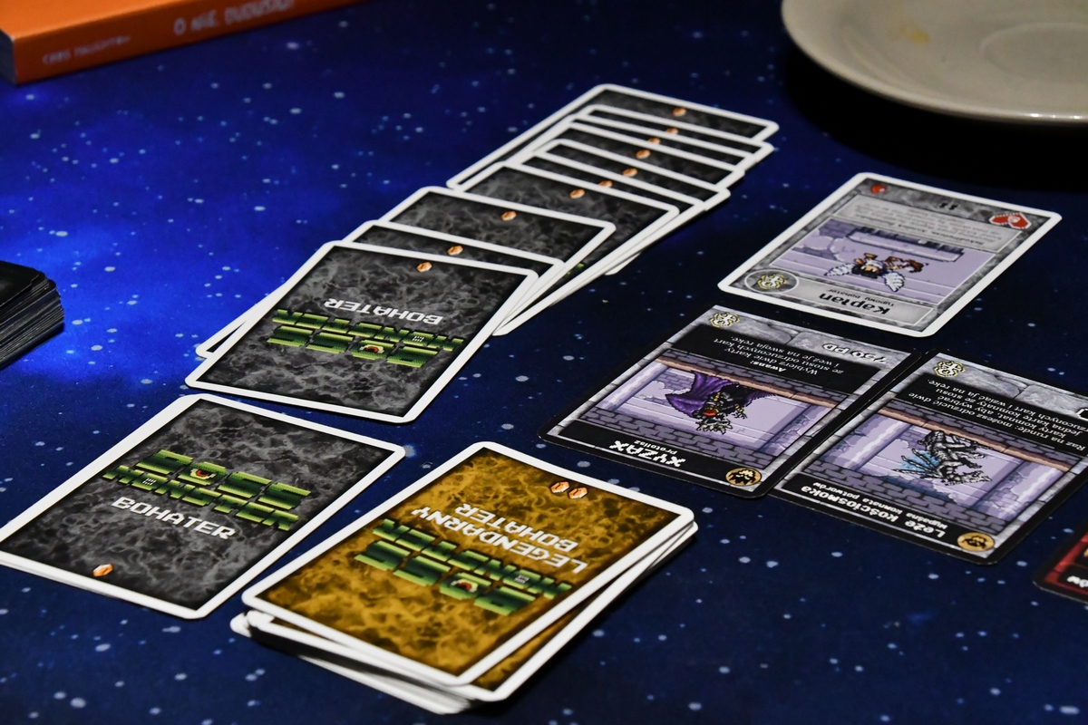 Fabuła Boss Monster to odwrócony Dungeon Crawler. Jesteśmy jednym z potworów, które chcą ściągnąć do swoich lochów bohaterów. Wygra ten potwór, który pokona 10 śmiałków (lub nie zginie). Pierwszy etap to poznanie bohaterów danej tury (mag, rycerz, złodziej, kapłan), którzy szukają odpowiednich skarbów (księgi, miecza, złota, medalionu) i dobranie karty komnat. Drugi etap to rozbudowa naszych podziemi o jedną komnatę. W komnatach są skarby, więc trzeci etap to wskazanie graczy, do których pójdą bohaterowie. I wreszcie czwarty etap to pokonanie bohatera (pułapkami w komnatach) lub jego przeżycie i zadanie rany potworowi (ma 5 punktów zdrowia). To co słabo odczuwałem to nawiązanie do klasyki gier wideo. Właściwie trzeba się skupiać na dwóch elementach: liczbie ikon skarbów oraz wartości życia u bohaterów i obrażeń w komnatach. Po drugie gra jest dość monotonna: dokładam komnatę, ściągam bohaterów, liczę ile moje komnaty zadają obrażeń i zabieram tych bohaterów jako punkty. I znowu to samo. Po trzecie jest duży potencjał (i efekty) do negatywnej interakcji, ale dobieranie tylko jednej karty znacznie zwiększa losowość gry kosztem możliwości. Raczej to nie mój klimat.