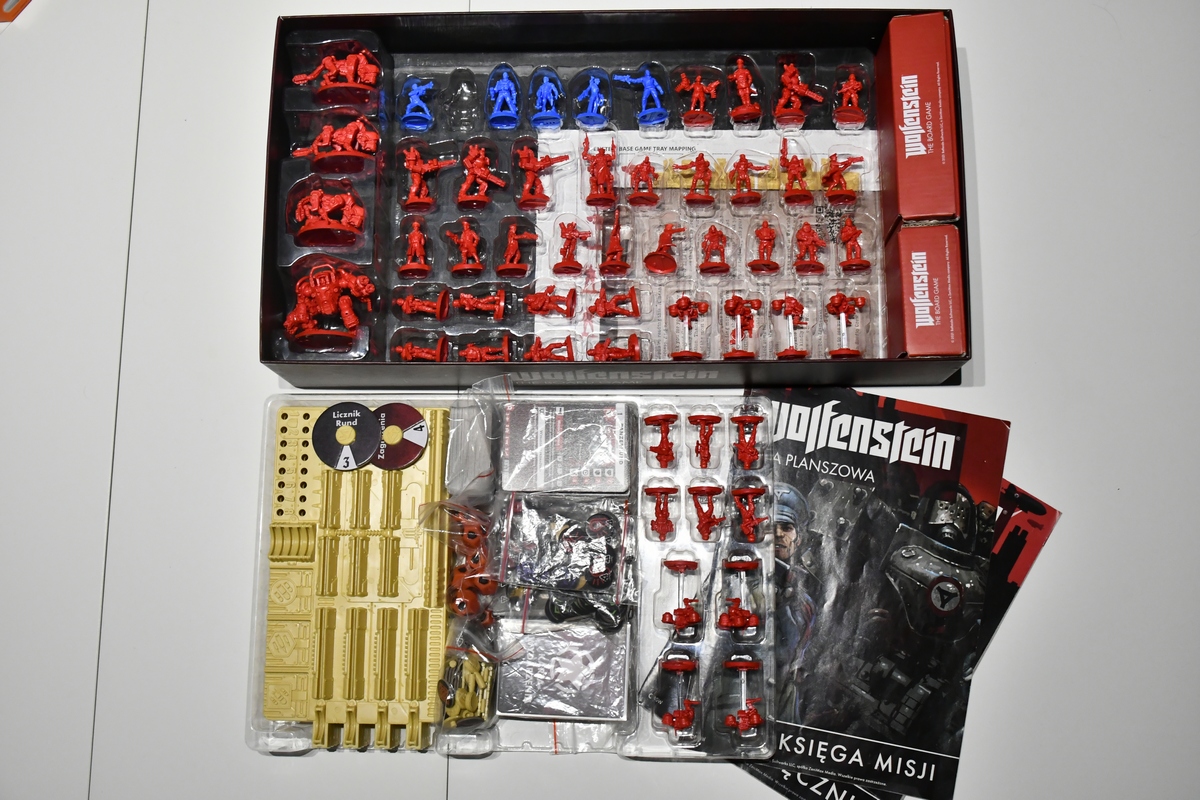 Mimo że Wolfenstein to 24 strony instrukcji i kolejnych kilkanaście stron scenariuszy, zasady są stosunkowo proste. Należy rozłożyć kafelki pomieszczenia według scenariusza. Na nich umieścić wrogów, żetony wydarzeń czy skrzyń, ustawić drzwi. Zawsze do walki rusza czterech bohaterów, którzy mają punkty akcji wskazane na swoich planszetkach. Mają też bronie i inny ekwipunek. I po trzy zdolności specjalne (przez co jednoczesna gra wszystkimi postaciami w trybie solo wymaga skupienia). Każdy bohater może wydawać punkty akcji na ruch (najlepiej tak, żeby nie wywoływać hałasu), otwarcie drzwi, aktywacje wydarzenia czy przeszukanie skrzyni oraz atak. Po fazie graczy jest faza wrogów - nazistów (bo klimat gry, w której zdobywa się futurystyczną kwaterę Hitlera, jest tu odczuwalny) z dość prostą logiką: najpierw strzelają, potem biegną w stronę graczy. Jak na grę ameri jest dość dużo myślenia strategicznego, kogo najlepiej ukatrupić na początku (i kim). W grze jest 10 scenariuszy z takim samym ustawieniem planszy, więc regrywalność jest ograniczona. Dla mnie na plus jest tutaj spokój. W porównaniu do np. Zombicide nie ma kaskadowego przyrostu wrogów, można ich wykańczać według ustalonego na początku planu. Losowość jest skutecznie niwelowana przez przedmioty i umiejętności postaci. Jednocześnie wspomniany już klimat i grafiki są bardzo przyjemne. Zasady dość łatwo przyswoić i zapamiętać (nawet młodszym graczom). Gdyby nie długość kampanii i upierdliwość w szukaniu figurek, ocena mogłaby być maksymalna.