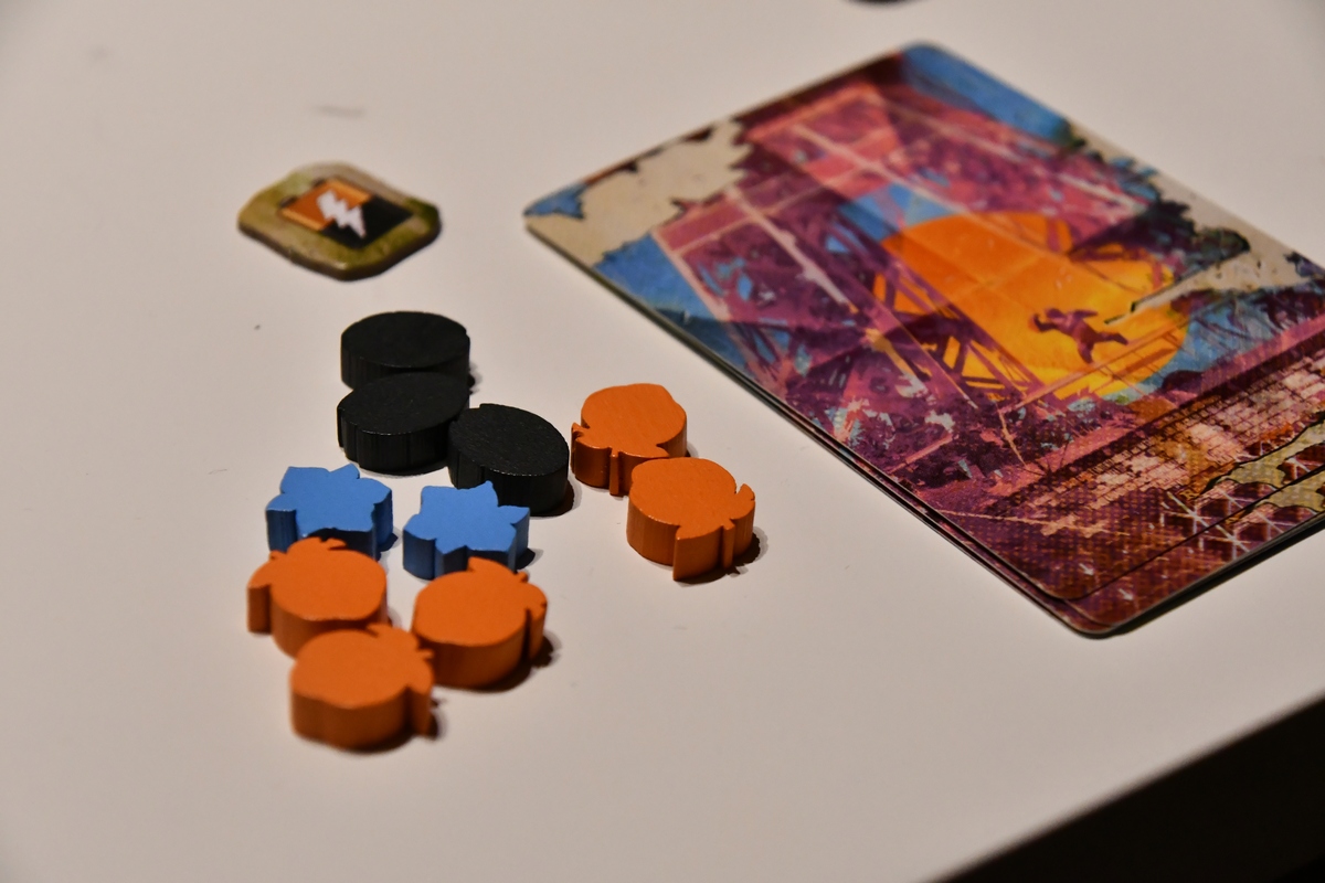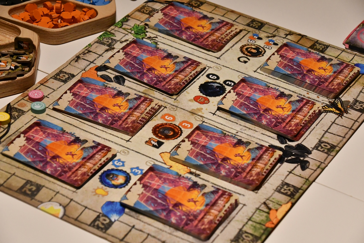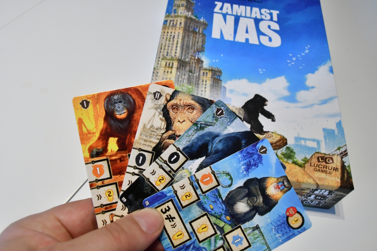 Zamiast Nas to gra o małpach - i małpi klimat jest widoczny - oraz o post apokaliptycznym świecie - i tego w grze niestety w ogóle nie czuć. Jedyny element, który na to wskazuje to okładka oraz jeden z surowców (baterie), który jest zużywany do korzystania z przedmiotów po ludziach. Natomiast sama gra jest bardzo przyjemna, zwłaszcza dla niekonfliktowych graczy. W pierwszej fazie każdy w tym samym czasie dobiera cztery karty i zdobywa surowce (kwiaty, owoce, ziarna i te baterie), po czym wydaje je najczęściej na punkty w wyścigu. W drugiej fazie należy zakupić za surowce silniejsze karty, ewentualnie odrzucić słabsze (czyli widać deck building). I to poza kilkoma mniejszymi twistami wszystko. Najważniejszym mechanizmem jest wykładanie kart w ten sposób, aby odpowiednio się łączyły i przez to wysoko punktowały. Rozgrywka jest dosyć szybka, więc nic nie stoi na przeszkodzie, aby ustalić wyższy próg końca gry (metę) niż domyślne 80 punktów.